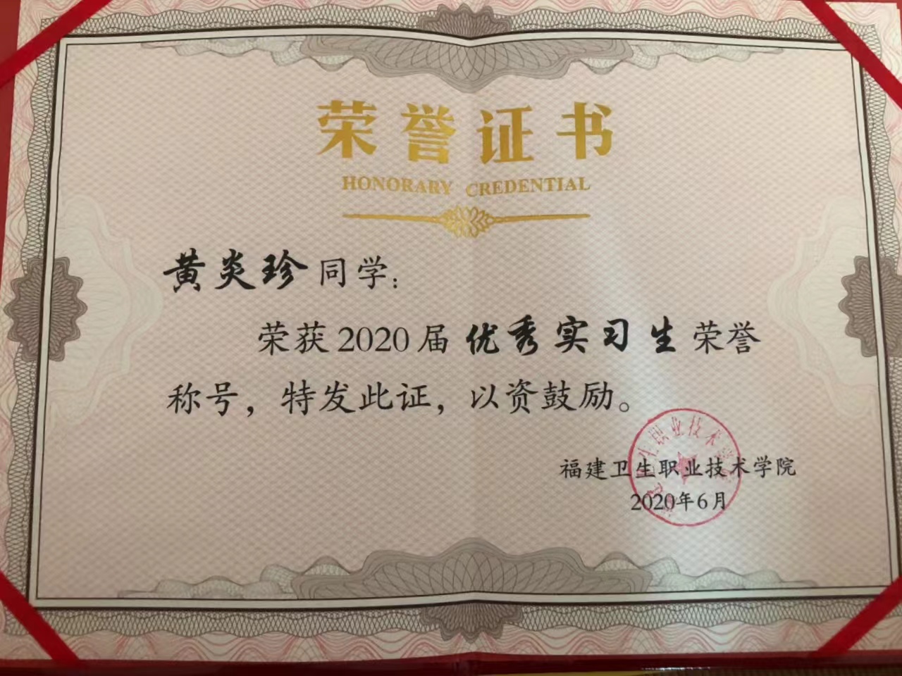 “堅定目標,不退縮,不放棄!”這是黃炎珍踐行的勵志名言。完成在校的理論學習之后,黃炎珍憑借著自己的努力進入福建醫(yī)科大學附屬第一醫(yī)院實習,并擔任實習組長。實習期間,她認真仔細、任勞任怨,不斷提升自己的專業(yè)能力,在實踐中總結(jié)經(jīng)驗,獲得患者與帶教老師的一致好評。
