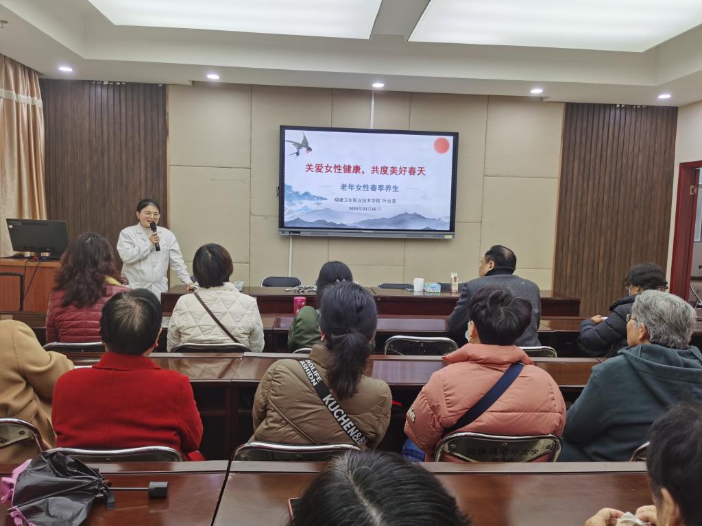 值此“三八”國(guó)際婦女節(jié)來(lái)臨之際,為關(guān)愛(ài)女性健康,倡導(dǎo)健康生活方式,增強(qiáng)女性自我保健意識(shí),3月6日,福建衛(wèi)生職業(yè)技術(shù)學(xué)院老年大學(xué)組織繼續(xù)教育學(xué)院、醫(yī)學(xué)院師生一行前往閩侯縣老年大學(xué),為女性學(xué)員們帶來(lái)一場(chǎng)溫馨的“關(guān)愛(ài)女性健康,共度美好春天”公益科普講座,向女性學(xué)員們致以節(jié)日祝福和美好祝愿。