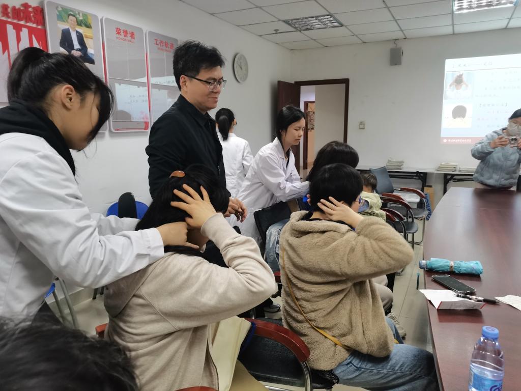 在健康服務(wù)環(huán)節(jié),醫(yī)學(xué)院教師第三黨支部書(shū)記陳銘為老人們帶來(lái)了“常用穴位與保健按摩”專題講座,深入淺出地講解中醫(yī)養(yǎng)生知識(shí),到場(chǎng)師生協(xié)助指導(dǎo)社區(qū)居民穴位定位,體驗(yàn)穴位按摩,讓社區(qū)居民受益匪淺。
