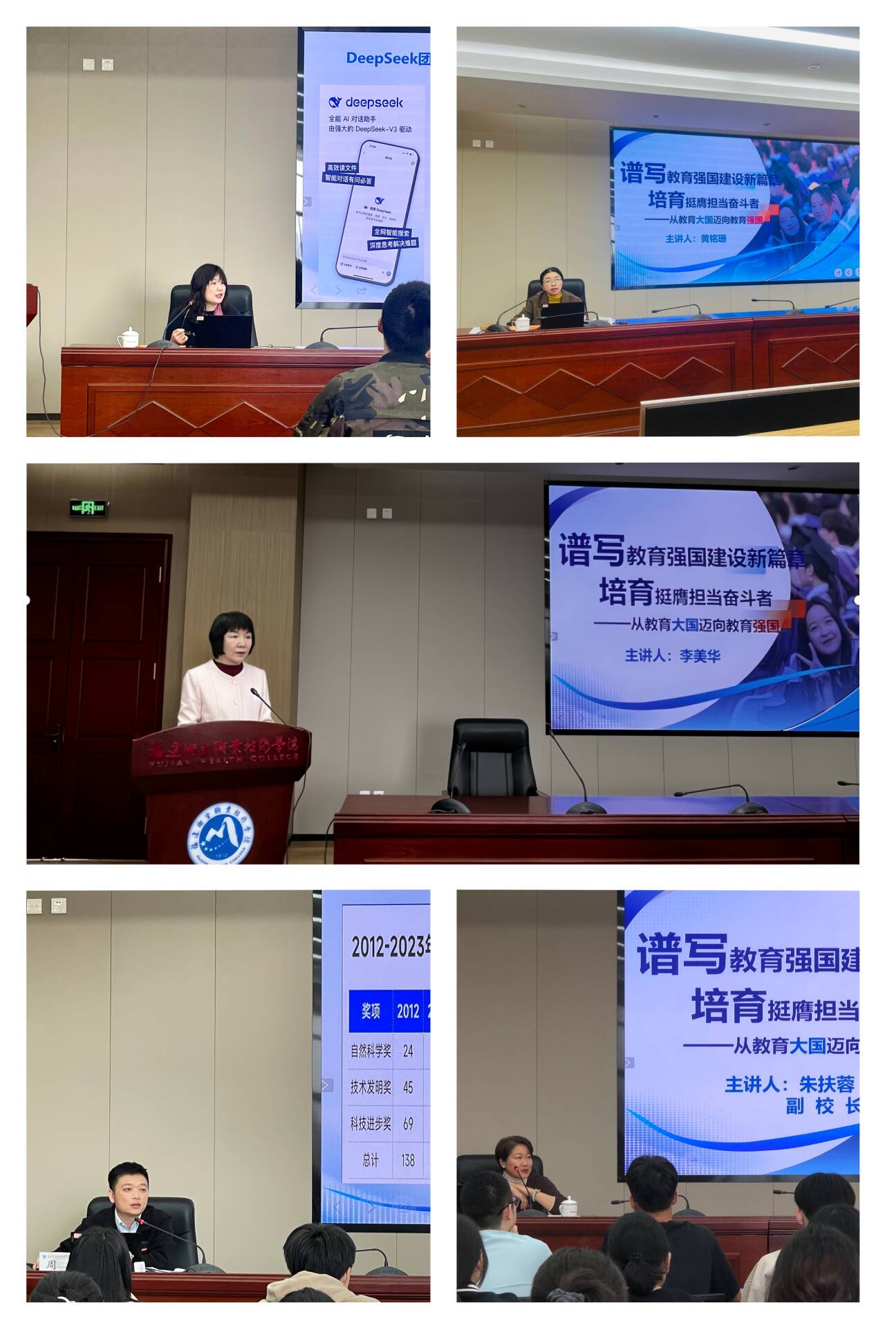 為深入學(xué)習(xí)貫徹習(xí)近平總書記重要講話精神和全國(guó)教育大會(huì)精神,進(jìn)一步凝聚思想共識(shí)、強(qiáng)化使命擔(dān)當(dāng),3月11日至21日,校黨委書記曾武祈、校長(zhǎng)許能鋒、黨委副書記李美華、紀(jì)委書記林玲和副校長(zhǎng)黃銘珊、周雄、朱扶蓉紛紛走上講臺(tái),為我校上千名黨政干部和師生代表講授形勢(shì)與政策課。
