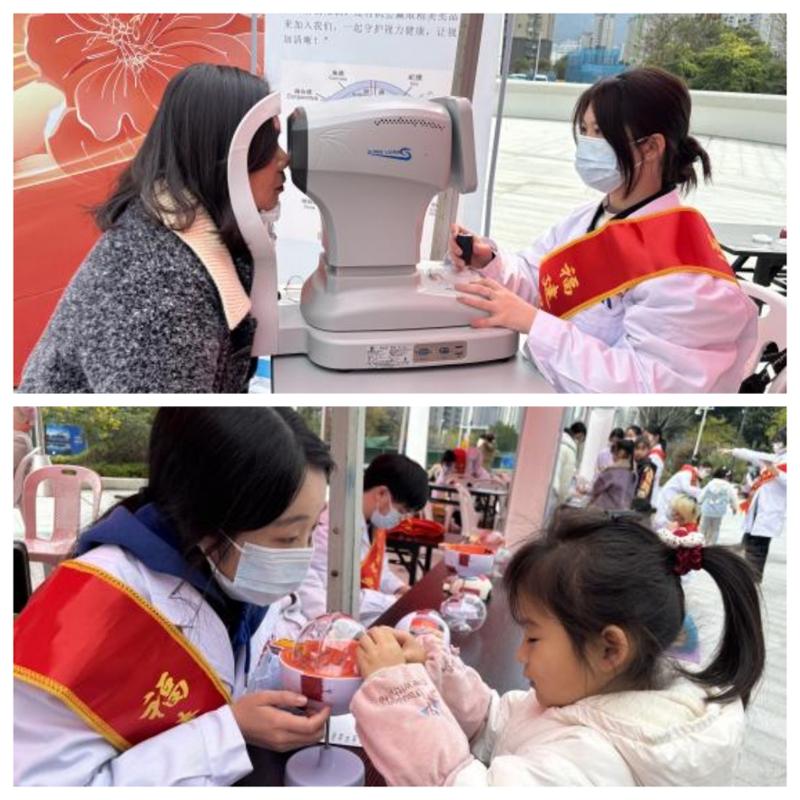 醫(yī)學(xué)技術(shù)與工程學(xué)院眼視光技術(shù)專業(yè)的同學(xué)前往福州科技館新館,踏上春“鋒”送暖與愛同行的旅程——邀請少年兒童參加眼球結(jié)構(gòu)拼接體驗(yàn),開展驗(yàn)光檢查,向同行家長科普愛眼護(hù)眼的相關(guān)注意事項(xiàng)。