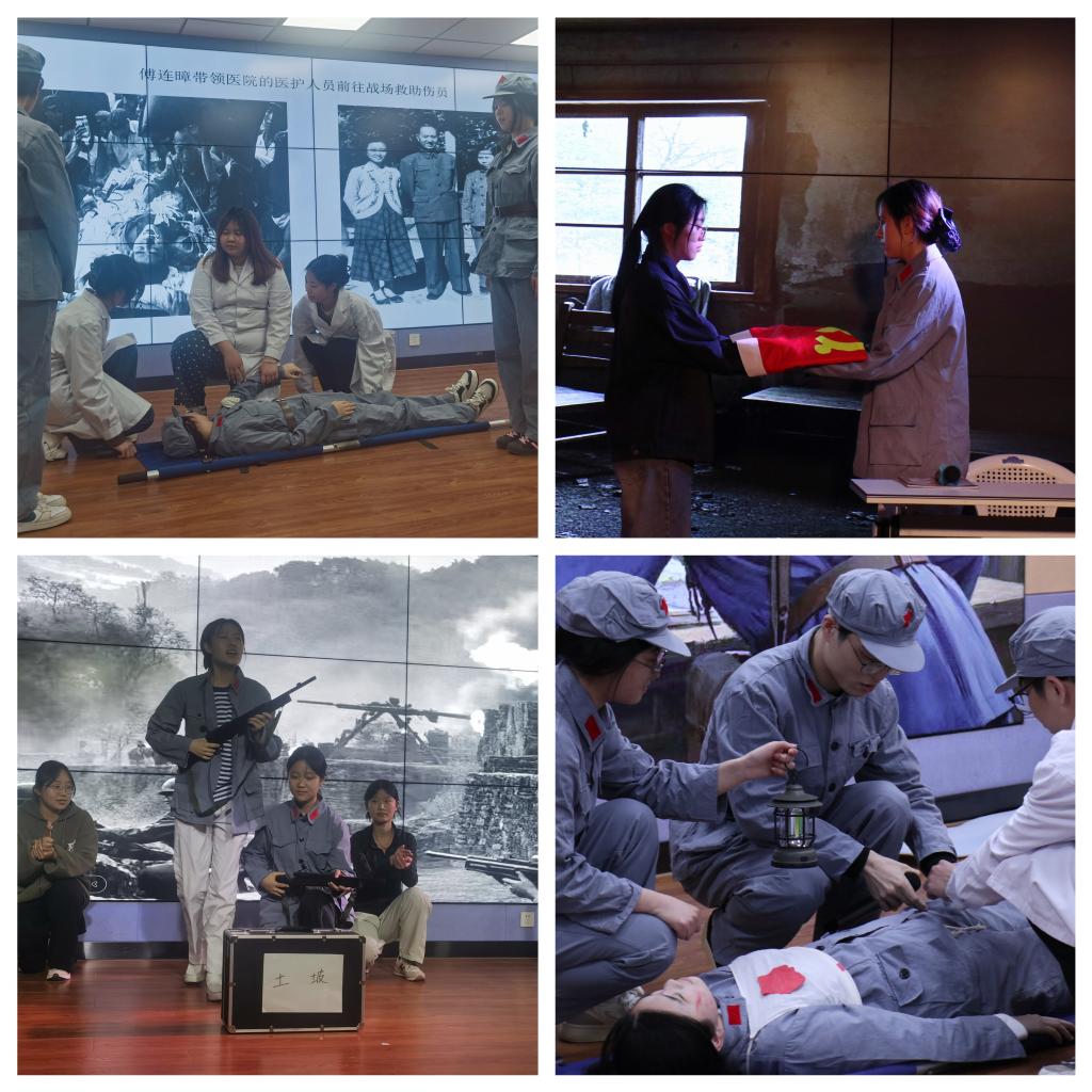 《傅連暲從教會(huì)醫(yī)生到革命者的轉(zhuǎn)變》《赤膽忠魂——陳興桂》《華東醫(yī)務(wù)工作者的旗幟》《我的人生起點(diǎn)》《吳孟超:特殊的禮物》《生命的守護(hù)——林巧稚》《青春綻疆,醫(yī)暖山河》等情景劇作品,以充滿時(shí)代印記的舞臺(tái)設(shè)計(jì)和深刻敘事,生動(dòng)再現(xiàn)傅連暲、陳興桂、高胡、陶平、林巧稚、吳孟超等福建紅醫(yī)群體在革命烽火、新中國(guó)成立前后及新時(shí)代醫(yī)療戰(zhàn)線上的奮斗史詩(shī)。劇中不僅凝練展現(xiàn)了“政治堅(jiān)定、救死扶傷、埋頭苦干、技術(shù)優(yōu)良”為主要內(nèi)容的紅醫(yī)精神內(nèi)核,更通過(guò)同學(xué)們極具張力的表演,將觀眾帶入歷史情境。觀演師生深切感悟到,沉浸式演繹既是對(duì)紅醫(yī)先驅(qū)艱苦奮斗的致敬,更讓當(dāng)代醫(yī)學(xué)生從跨越時(shí)空的精神對(duì)話中,堅(jiān)定了傳承紅醫(yī)薪火、精進(jìn)醫(yī)技仁心、勇?lián)】抵袊?guó)使命的信念力量。
