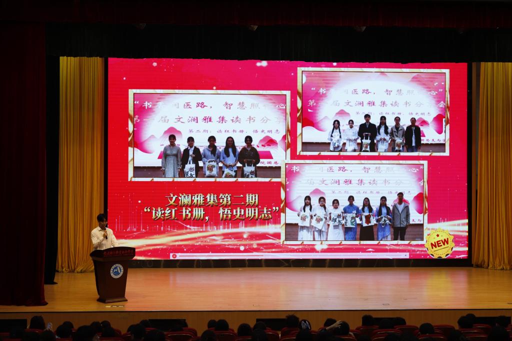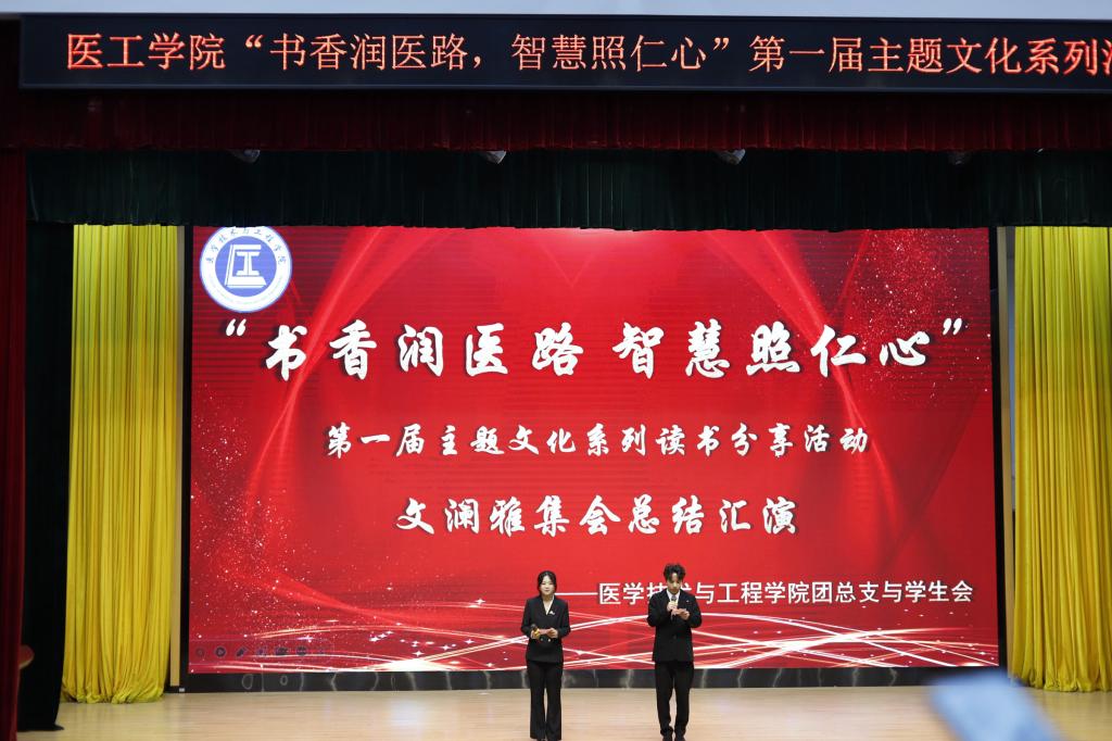 為搭建深度閱讀與思想碰撞的平臺(tái),鼓勵(lì)同學(xué)們?cè)诜窒碇型卣拐J(rèn)知邊界,在交流中促進(jìn)精神成長(zhǎng),樹立優(yōu)良學(xué)風(fēng),為未來發(fā)展打下堅(jiān)實(shí)基礎(chǔ),近日,醫(yī)學(xué)技術(shù)與工程學(xué)院學(xué)生第一黨支部、第二黨支部、學(xué)院團(tuán)總支聯(lián)合學(xué)院學(xué)生會(huì)在崇學(xué)廳開展“書香潤(rùn)醫(yī)路,智慧照仁心”第一屆主題文化系列活動(dòng)——文瀾雅集總結(jié)匯演。這場(chǎng)持續(xù)3個(gè)月的文化盛宴,以閱讀為紐帶,串聯(lián)起個(gè)人成長(zhǎng)、紅色傳承與心靈探索,在總結(jié)匯演中綻放出別樣光彩。學(xué)生工作部、醫(yī)學(xué)技術(shù)與工程學(xué)院相關(guān)負(fù)責(zé)人及學(xué)院全體輔導(dǎo)員參與本次活動(dòng)。