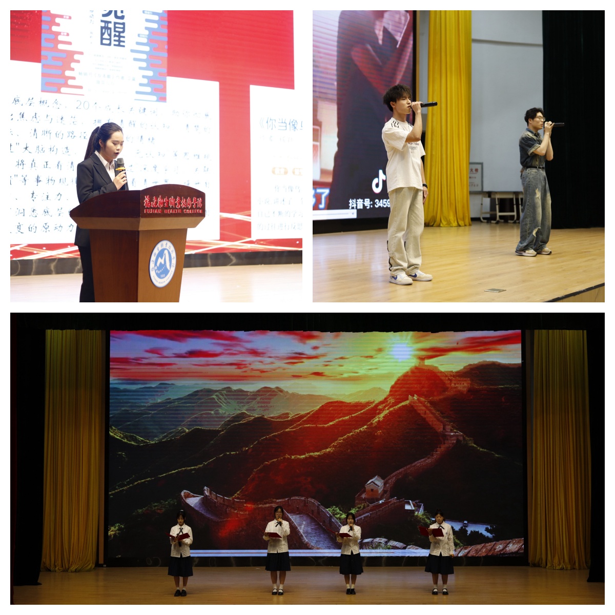 23影像302班陳樂怡以《認(rèn)知覺醒》《你當(dāng)像鳥飛往你的山》分享“認(rèn)知破局”與“成長(zhǎng)蛻變”,一句“像鳥奔赴大山般勇敢”點(diǎn)燃全場(chǎng);黃文娟、董可馨等同學(xué)朗誦《破繭成蝶,奔赴山海》,用詩意語言描繪“破繭”的堅(jiān)韌;劉徐輝、林盛澤演唱《無名之輩》,以歌聲致敬平凡中的倔強(qiáng)——“致那黑夜中的嗚咽與怒吼,誰說站在光里的才算英雄”,唱出青年學(xué)子的熱血與擔(dān)當(dāng)。