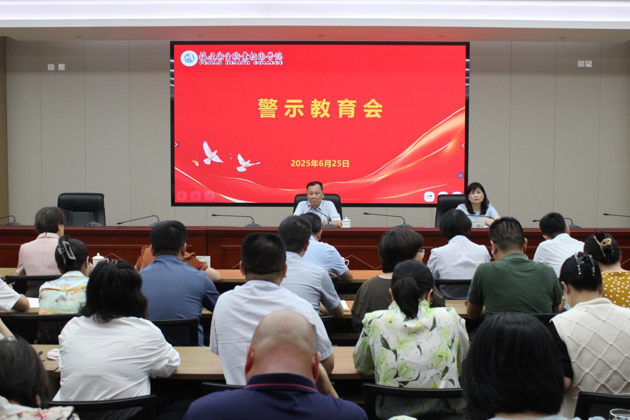 6月25日,學(xué)校召開警示教育會,深入學(xué)習(xí)貫徹習(xí)近平總書記關(guān)于加強黨的作風(fēng)建設(shè)的重要論述和中央八項規(guī)定及其實施細則精神,進一步強化以案為鑒、以案明紀、以案促改,推動深入貫徹中央八項規(guī)定精神學(xué)習(xí)教育走深走實。校黨委書記曾武祈主持會議并講話。