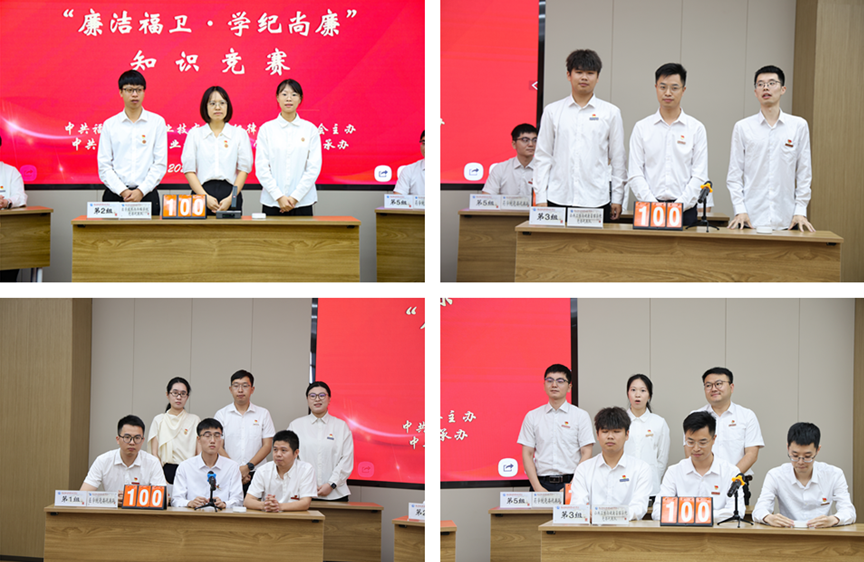 此次知識(shí)競賽緊密圍繞習(xí)近平總書記關(guān)于加強(qiáng)黨的作風(fēng)建設(shè)的重要論述、中央八項(xiàng)規(guī)定及其實(shí)施細(xì)則、中國共產(chǎn)黨紀(jì)律處分條例、黨政機(jī)關(guān)厲行節(jié)約反對(duì)浪費(fèi)條例等內(nèi)容展開。各學(xué)院選派的五支師生代表隊(duì)在“必答題”“搶答題”“風(fēng)險(xiǎn)題”這三個(gè)環(huán)節(jié)進(jìn)行了精彩比拼,活動(dòng)現(xiàn)場氣氛熱烈,參賽選手精神飽滿、沉著冷靜,既展現(xiàn)出扎實(shí)的政治理論素養(yǎng),又展示了團(tuán)隊(duì)之間的緊密協(xié)作精神。