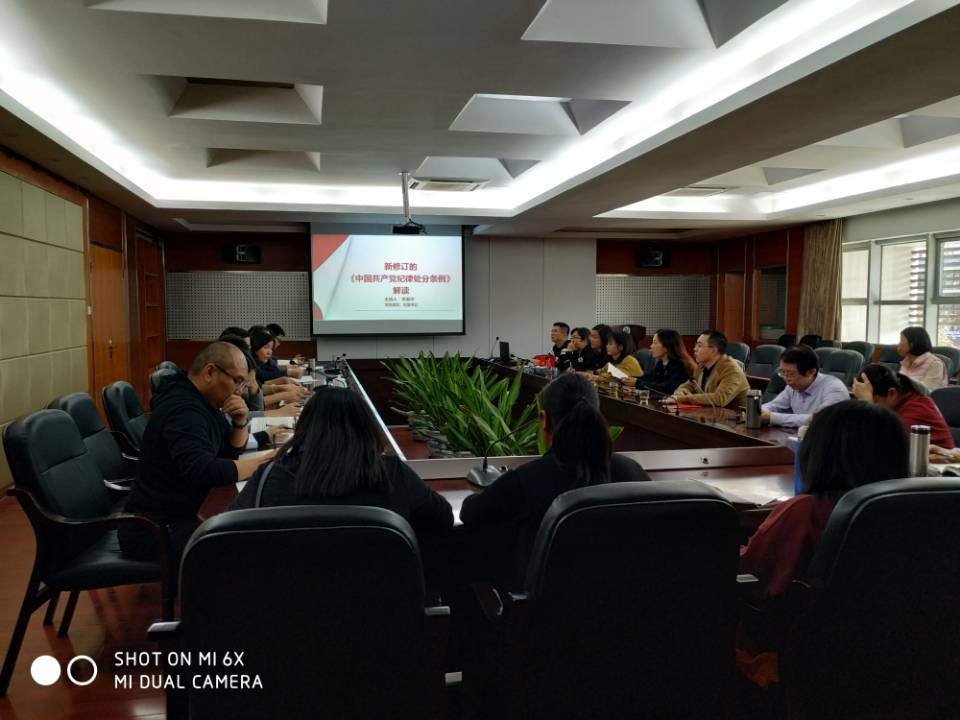 為深入貫徹落實(shí)習(xí)近平新時(shí)代中國(guó)特色社會(huì)主義思想,進(jìn)一步強(qiáng)化黨的紀(jì)律,統(tǒng)一思想,形成共識(shí), 11月27日下午,學(xué)院紀(jì)委在行政樓四樓會(huì)議室舉辦新修訂的《中國(guó)共產(chǎn)黨紀(jì)律處分條例》解讀講座,由紀(jì)委書(shū)記李美華進(jìn)行解讀。紀(jì)委委員、黨總支、黨支部紀(jì)檢委員和紀(jì)檢監(jiān)察室全體工作人員參加了講座。講座由紀(jì)委副書(shū)記程劍芬主持。