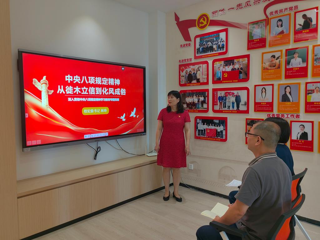為扎實(shí)推進(jìn)中央八項(xiàng)規(guī)定精神學(xué)習(xí)教育走深走實(shí),提升黨員干部的紀(jì)律規(guī)矩意識(shí)和作風(fēng)建設(shè)水平,2025年6月18日,校黨委委員、紀(jì)委書(shū)記林玲以《八項(xiàng)規(guī)定:從徙木立信到化風(fēng)成俗》為題,為紀(jì)委辦公室黨支部全體黨員帶來(lái)了一場(chǎng)深刻且生動(dòng)的專題黨課。