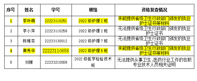 根據(jù)《福建衛(wèi)生職業(yè)技術學院高等學歷繼續(xù)教育學生學籍管理規(guī)定》第一章第三條:“新生入學后,學校在 3 個月內按照高校學歷繼續(xù)教育招生統(tǒng)一考試招生規(guī)定對其進行復查。復查合格者予以注冊學籍。復查不合格者,由學校區(qū)別情況,予以處理,直至取消入學資格。凡屬弄虛作假、徇私舞弊取得學籍者,一經查實,取消其學籍。情節(jié)惡劣的,報請有關部門查究。”經我校繼續(xù)教育學院復查,李小萍等5位學生(名單見附件1)入學資格復查不合格。請相關學生從即日起7日內與本校繼續(xù)教育學院聯(lián)系,辦理退費或轉專業(yè)手續(xù),逾期我院將對該批學生取消入學資格。
