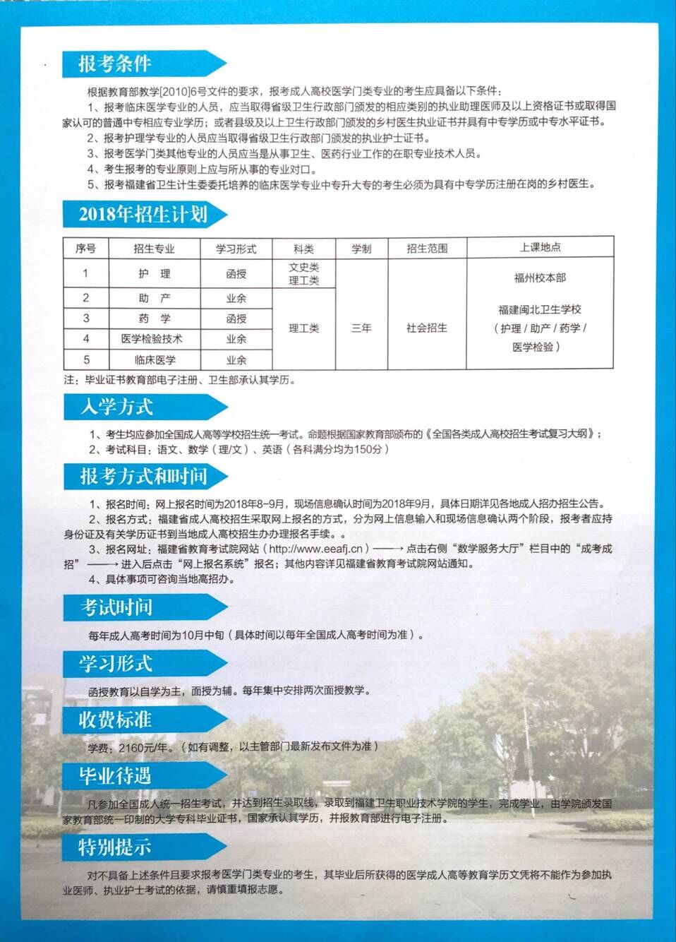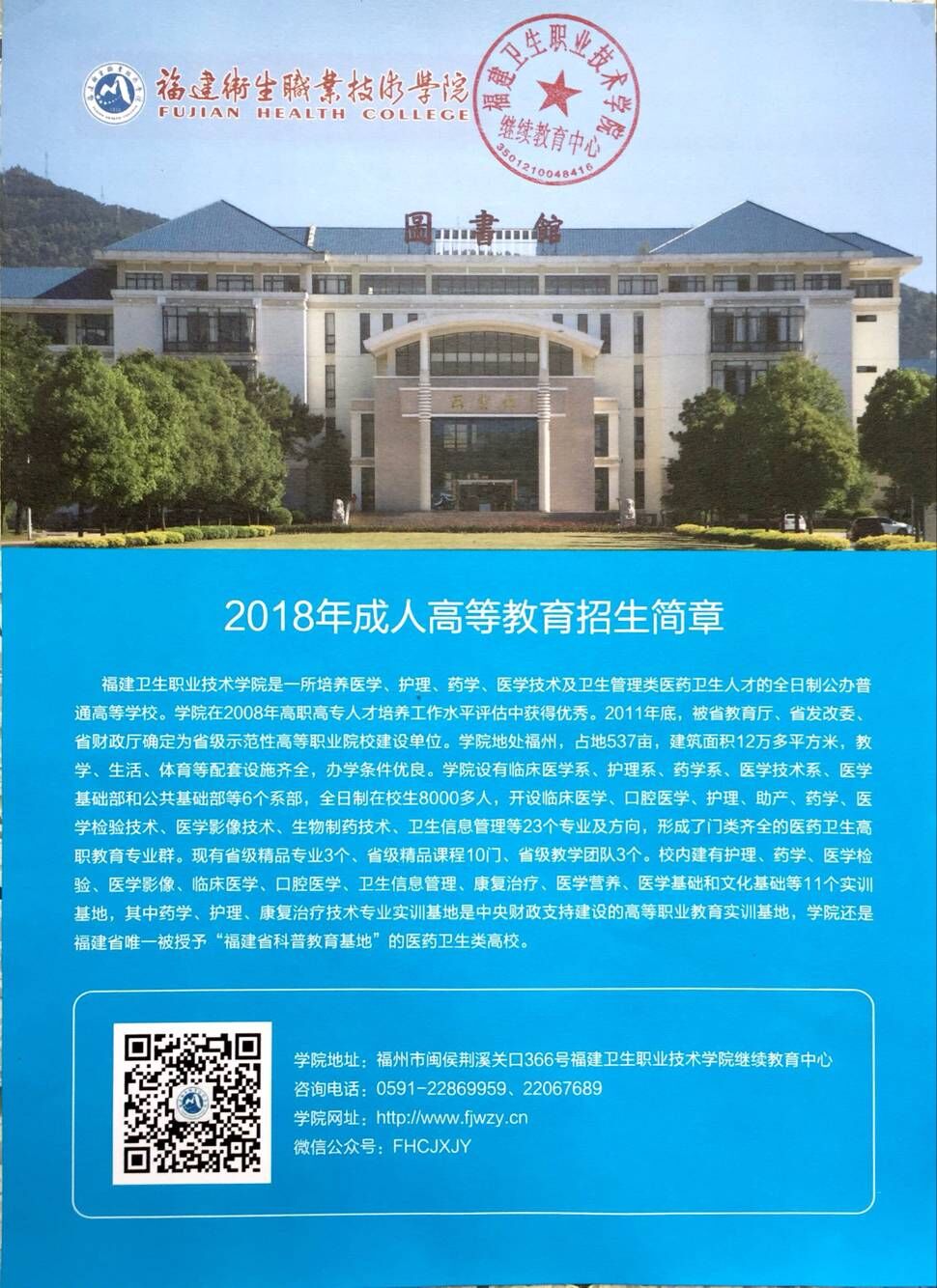 2018年福建衛(wèi)生職業(yè)技術(shù)學(xué)院成人教育招生簡(jiǎn)章