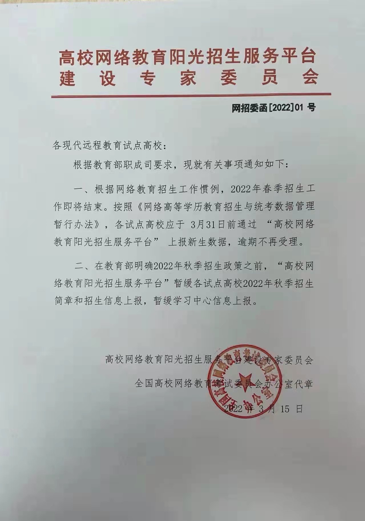 近日,北京中醫(yī)大學(xué)接網(wǎng)考辦通知,2022春新生上報數(shù)據(jù)日期仍為3月31日止,2022年秋季招生簡章和招生信息在教育部明確秋季招生政策前暫緩上報,故繼續(xù)教育學(xué)部將2022春季招生截止時間調(diào)整為2022年3月20日17點,請有意向報名的考生安排好報名時間。