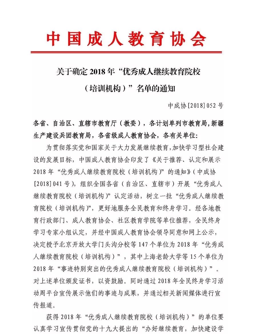 近日,中國(guó)成人教育協(xié)會(huì)發(fā)布了《關(guān)于確定2018年“優(yōu)秀成人繼續(xù)教育院校(培訓(xùn)機(jī)構(gòu))”名單的通知》(中成協(xié)〔2018〕052號(hào)),經(jīng)各地教育行政部門(mén)、成人教育協(xié)會(huì)、社區(qū)教育學(xué)院等單位推薦,全民終身學(xué)習(xí)專(zhuān)家小組認(rèn)定,全國(guó)147個(gè)單位被授予“優(yōu)秀成人繼續(xù)教育院校(培訓(xùn)機(jī)構(gòu))”,我院是福建省三個(gè)入選單位中唯一一所高職高專(zhuān)院校。