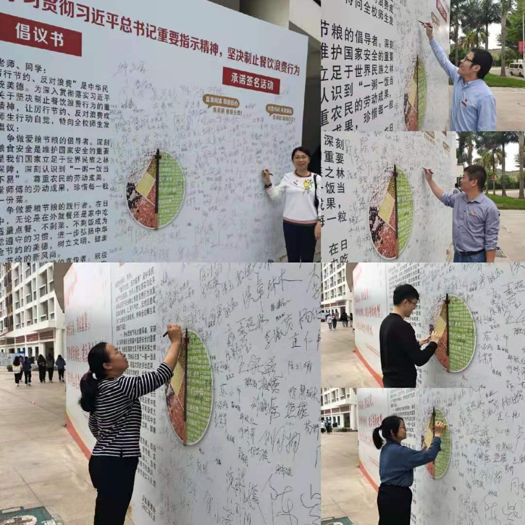 師生積極響應(yīng)習(xí)近平總書記對制止餐飲浪費行為重要指示精神倡議,簽名承諾厲行節(jié)約珍惜糧食,用實際行動踐行光盤。米粒雖小,尤見禮義廉恥;節(jié)儉事微,可助興國安邦,我們要樹立珍惜糧食的意識,踐行愛惜糧食的理念。節(jié)約糧食,從我做起,從現(xiàn)在做起!