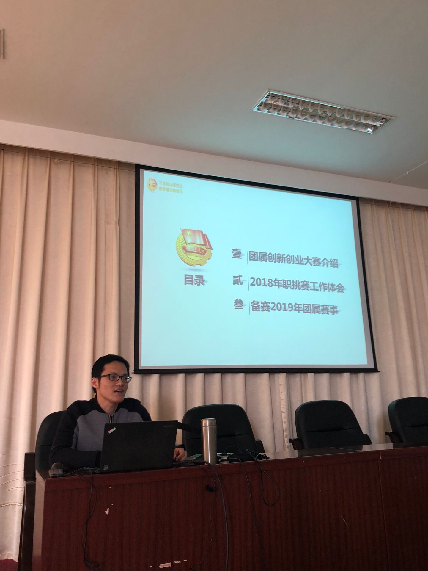 黃曦書記作題為《創(chuàng)新創(chuàng)業(yè)創(chuàng)未來·青春建功新時代》的報告,從此次國家級團屬創(chuàng)新創(chuàng)業(yè)大賽的規(guī)格、參賽組織工作的體會以及2019年備賽思路三個方面與大家進行了交流分享。他深入淺出的闡述了此次大賽的立體全貌,形象生動的描繪了參賽組織工作的酸甜苦辣,入木三分的總結了參賽作品的選報技巧。在最后,他提出創(chuàng)新創(chuàng)業(yè)工作需要學生出點子,教師指路子,發(fā)揮師生創(chuàng)新動能,共同致力創(chuàng)新創(chuàng)造,并祝愿來年學院創(chuàng)新創(chuàng)業(yè)大賽再獲佳績!