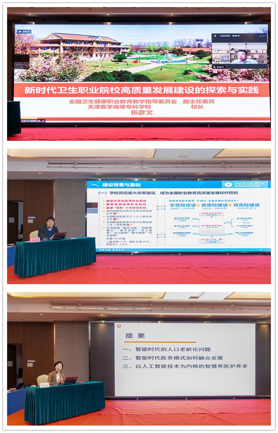會(huì)上,來自省內(nèi)外醫(yī)藥衛(wèi)生與健康領(lǐng)域的三位專家教授圍繞大會(huì)主題進(jìn)行專題報(bào)告。天津醫(yī)學(xué)高等??茖W(xué)校校長(zhǎng)張彥文以《新時(shí)代衛(wèi)生職業(yè)院校高質(zhì)量發(fā)展建設(shè)的探索與實(shí)踐》為題,通過現(xiàn)場(chǎng)連線的方式為參會(huì)人員開展講座。他分享了天津醫(yī)學(xué)高等??茖W(xué)校建設(shè)改革目標(biāo)制定和實(shí)施的經(jīng)驗(yàn),為全面加強(qiáng)產(chǎn)教融合、校企合作提供高屋建瓴的指導(dǎo)。金華職業(yè)技術(shù)學(xué)院樓宏強(qiáng)教授以《職業(yè)教育深入推進(jìn)產(chǎn)教融合實(shí)踐探索》為題,從建設(shè)背景、基礎(chǔ)、思路及舉措等層層推進(jìn),展開論述。福建師范大學(xué)吳宏洛教授以《人工智能時(shí)代醫(yī)養(yǎng)融合發(fā)展的養(yǎng)老服務(wù)探析》為題,闡述人工智能技術(shù)對(duì)健康養(yǎng)老產(chǎn)業(yè)及人才培養(yǎng)的影響,引發(fā)了現(xiàn)場(chǎng)人員的熱烈討論。三位專家的報(bào)告深入淺出地闡述了教育強(qiáng)國(guó)建設(shè)背景下如何通過產(chǎn)教融合實(shí)現(xiàn)教育鏈、人才鏈與產(chǎn)業(yè)鏈、創(chuàng)新鏈的有機(jī)銜接,干貨滿滿。