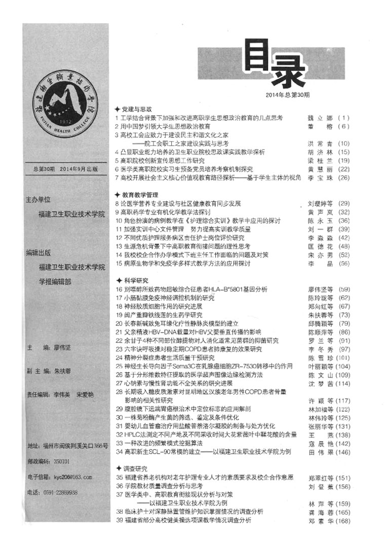 福建衛(wèi)生職業(yè)技術(shù)學(xué)院學(xué)報2014年總第三十期 目錄