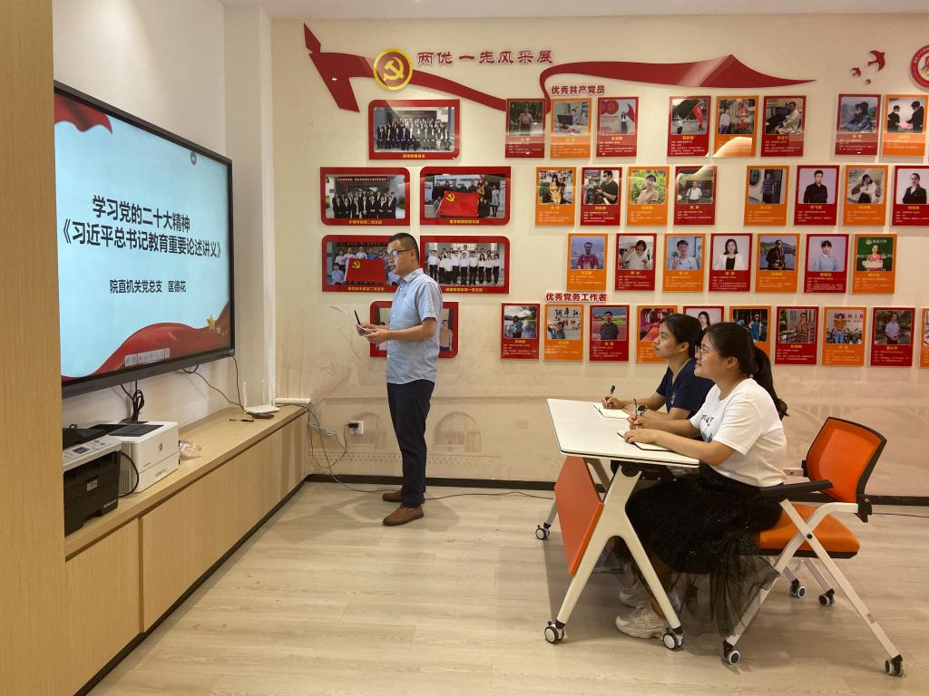 為深入開(kāi)展學(xué)習(xí)貫徹習(xí)近平新時(shí)代中國(guó)特色社會(huì)主義思想主題教育,6月13日下午,科研處、科技服務(wù)中心黨支部舉辦學(xué)習(xí)《習(xí)近平總書(shū)記教育重要論述講義》專題黨課,本次黨課由支部書(shū)記匡德花同志主講。