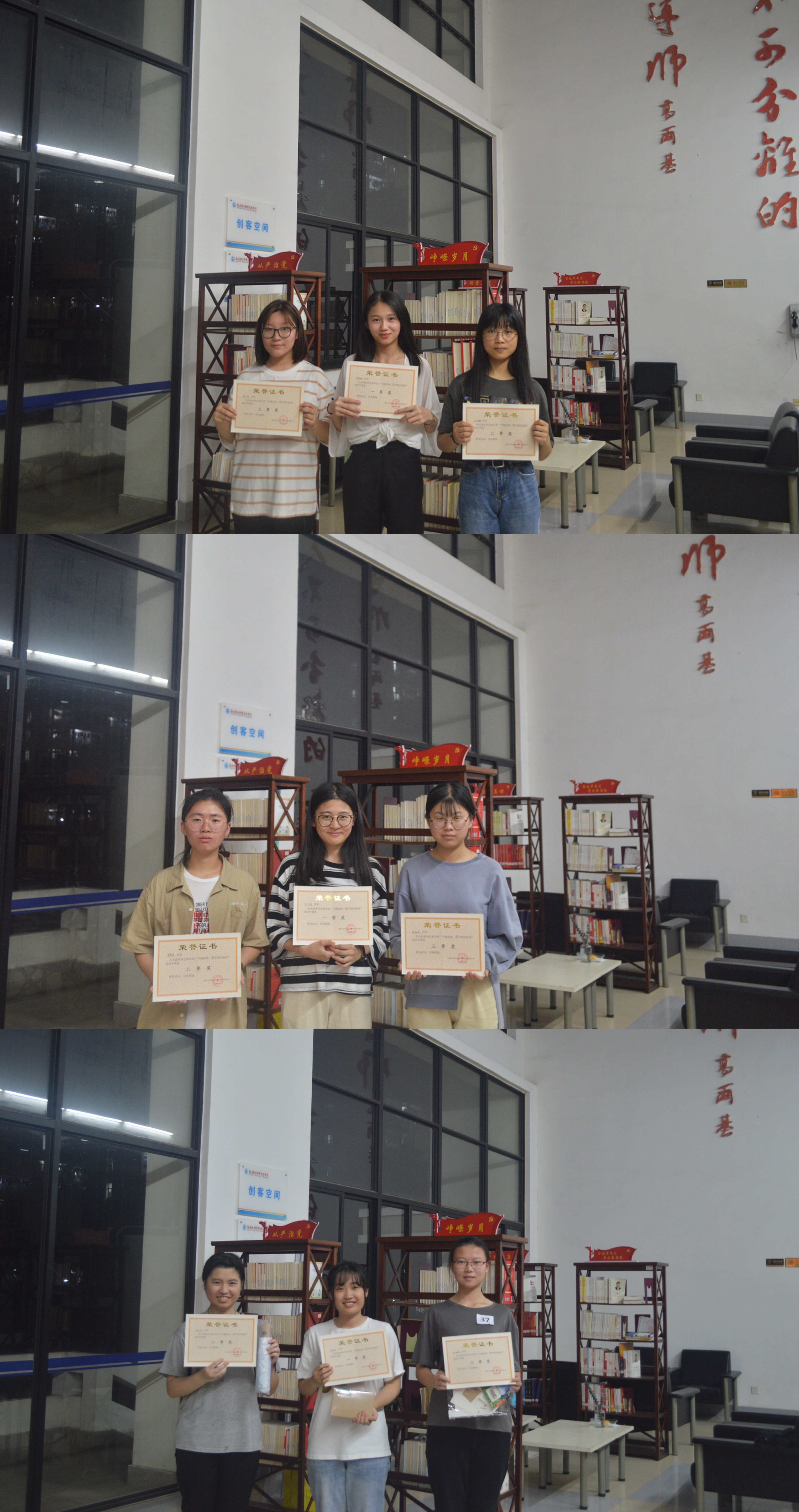 本次大賽吸引了近百名同學(xué)參加,分為三組,分別是勤工儉學(xué)組、讀者協(xié)會組、學(xué)生組。經(jīng)過激烈的競爭,最終勤工儉學(xué)組17藥學(xué)304楊福來獲得一等獎,18影像303朱麗敏獲得二等獎,18藥學(xué)301梁玉茜獲得三等獎,讀者協(xié)會組18檢驗304蔡詩盈獲得一等獎,18口腔301曾夢媛獲得二等獎,18護(hù)理314薛曉悅獲得三等獎。學(xué)生組18臨床302鄧佳鳳獲得一等獎,18護(hù)理318陳禾昀獲得二等獎,18藥學(xué)307趙涵影獲得三等獎。
