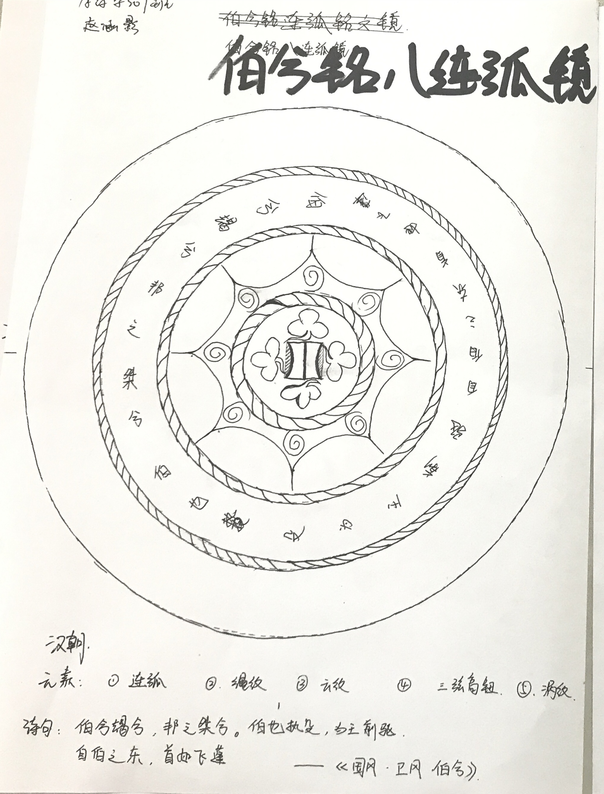 現(xiàn)場最優(yōu)秀的手繪作品出自18藥學(xué)307趙涵影同學(xué),她的作品不僅完全符合漢代鏡背“相思銘文”和“紋飾繁復(fù)”的特色,還將使用到的每一種鏡背元素逐一列出注釋。本次活動使讀者們增進了對古銅鏡的了解,提高了對博物館中傳統(tǒng)文化的向往與好奇,有利于推進校園文化建設(shè)。