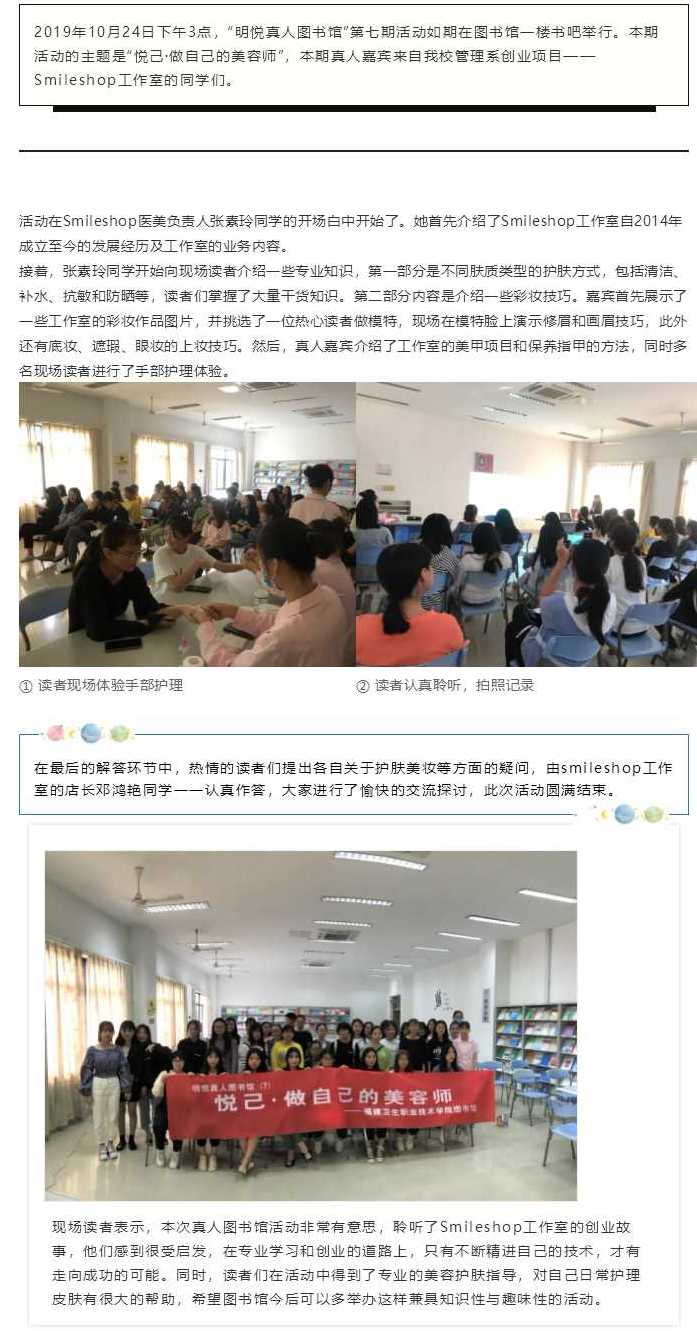 圖書(shū)館成功舉辦“明悅真人圖書(shū)館”第七期:“悅己·做自己的美容師”