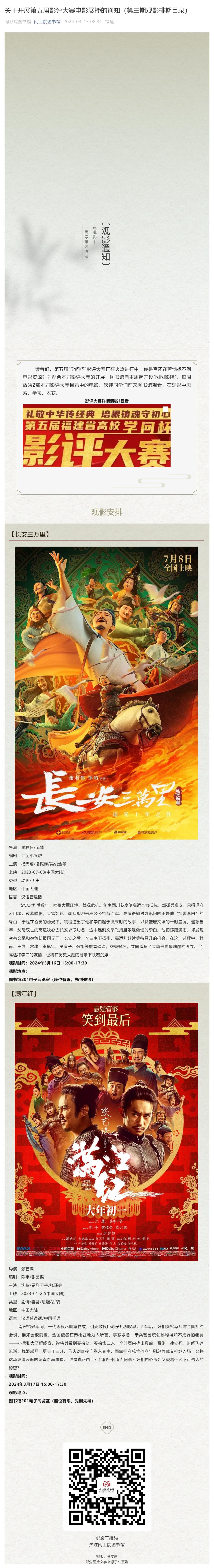關(guān)于開展第五屆影評(píng)大賽電影展播的通知(第三期觀影排期目錄)