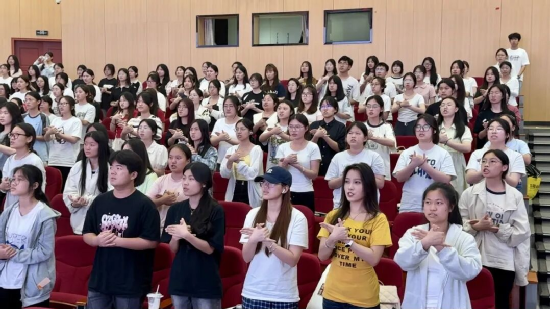 活動接近尾聲,由主持人領(lǐng)讀《論語》中的原著金句,并現(xiàn)場教學(xué)劇中出現(xiàn)的禮儀手勢——“叉手禮”,讓同學(xué)們體會到傳統(tǒng)文化的魅力,也更加加深了對孔子這位“至圣先師”的理解。