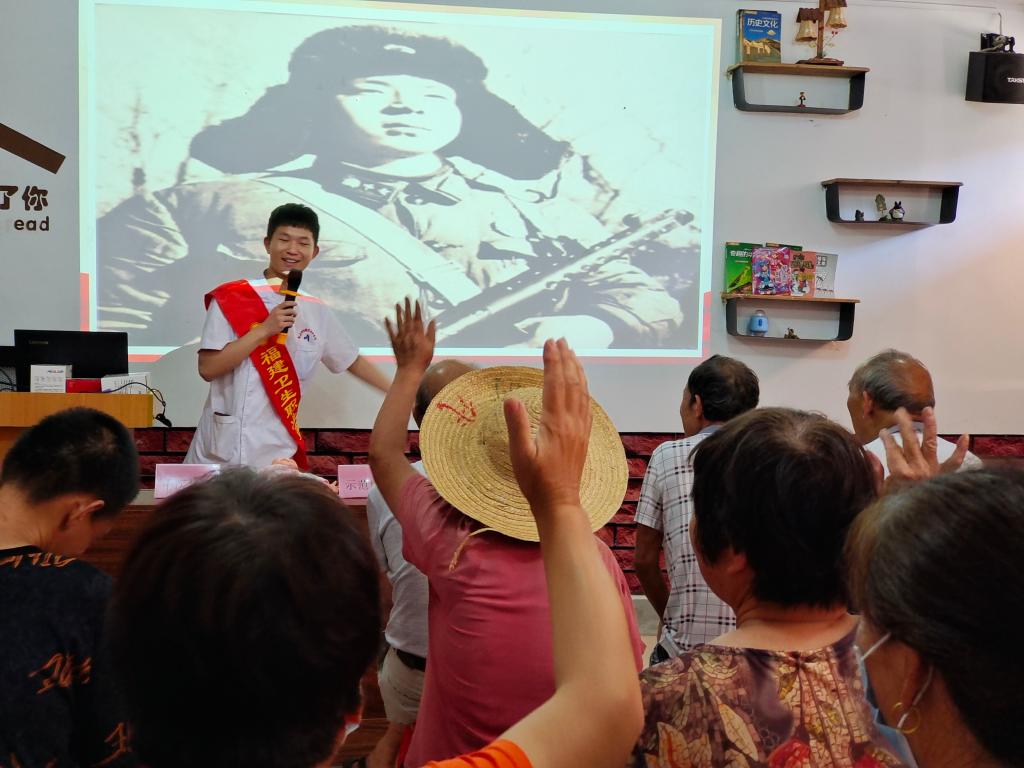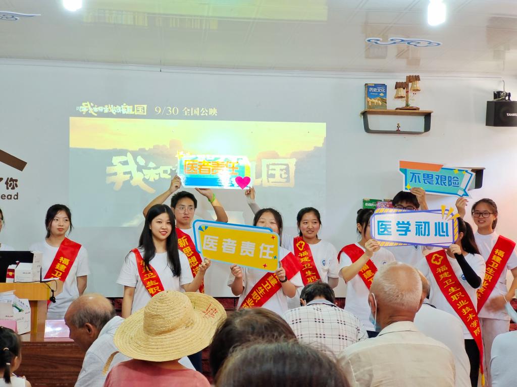 我?!搬t(yī)馬當(dāng)先”宣講隊的王佳瑤、王偉文、李文詩等三位同學(xué)向新坡村村民生動講述青年英模林祥謙、雷鋒、孫麗美的先進事跡。“‘頭可斷,血可流,工不可復(fù)!’林祥謙英勇就義,留下了振聾發(fā)聵的聲音?!薄啊?dāng)祖國和人民處在最危急的關(guān)頭,我就挺身而出,不怕犧牲?!聲r代的醫(yī)學(xué)生要像雷鋒那樣勇于擔(dān)當(dāng)責(zé)任、樂于奉獻。”“她的腳傷還沒完全康復(fù),踉蹌著走在抗臺風(fēng)一線,她帶著腳傷離開了,但她帶著為民情懷,深一腳淺一腳地,走進了百姓心中?!币粋€個鮮活故事直抵人心。宣講現(xiàn)場,實踐隊還激情滿懷獻唱《我和我的祖國》,誠摯表達著對祖國的拳拳愛意。時代更迭,信仰不變,中國青年始終與黨同心、與人民同行。青年一代要修好黨史“必修課”,傳承紅色基因,賡續(xù)紅色血脈,從百年黨史中汲取奮進力量,做政治過硬的新時代中國青年。