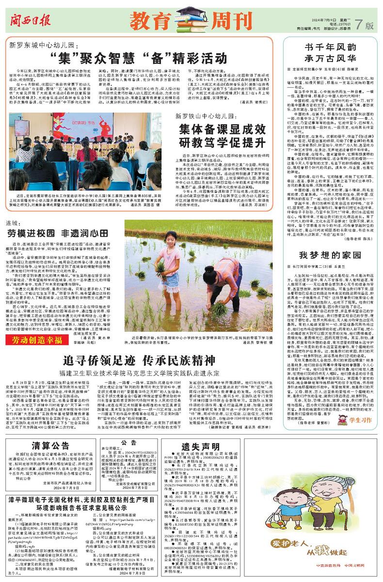 (【閩西日?qǐng)?bào)】 2024年7月9日 鏈接:http://www.mxrb.cn/dzb/m_mxrb/2024-07/09/node_07.html)