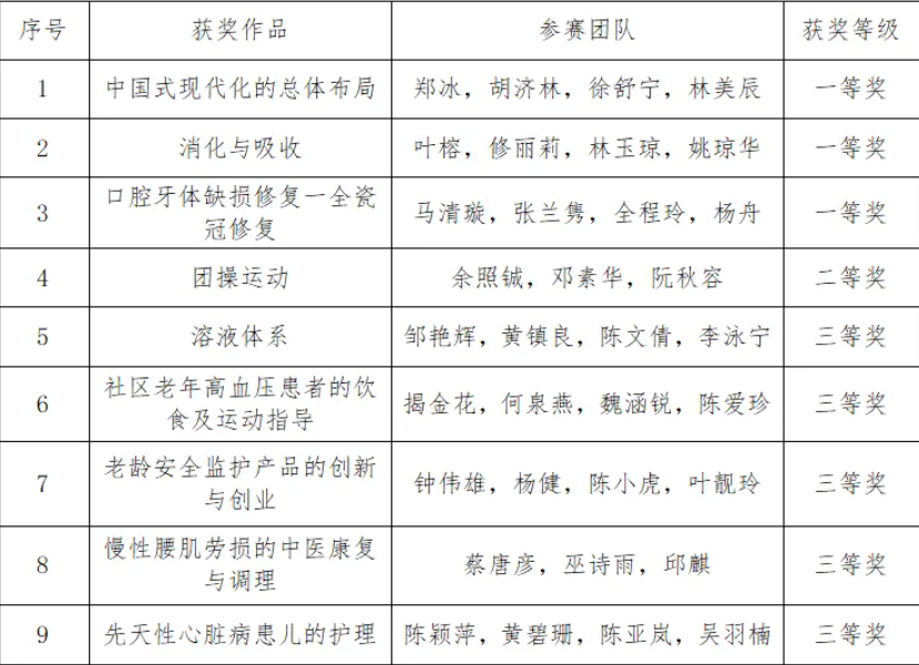 2024年福建省職業(yè)院校教學技能大賽教學能力比賽獲獎名單