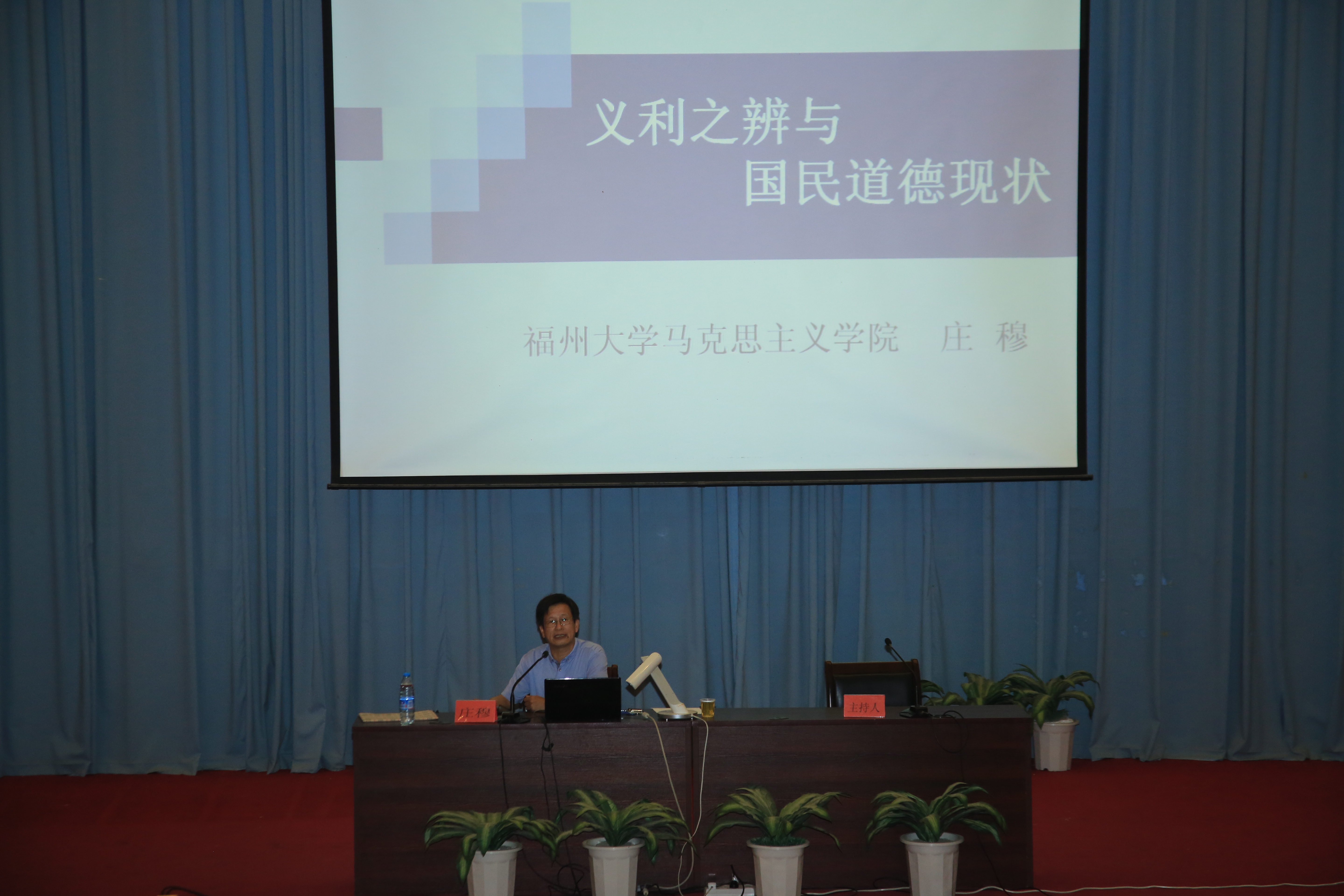2013年10月15日下午,全國(guó)科學(xué)技術(shù)與社會(huì)研究會(huì)副理事長(zhǎng)、福建省高校思想政治理論教學(xué)研究會(huì)副會(huì)長(zhǎng)、福州大學(xué)馬克思主義學(xué)院院長(zhǎng)暨碩士生導(dǎo)師莊穆教授應(yīng)邀為我院師生做了題為《義利之辯與國(guó)民道德現(xiàn)狀》的專題講座。我院師生400多人齊聚學(xué)術(shù)廳聆聽(tīng)了講座。