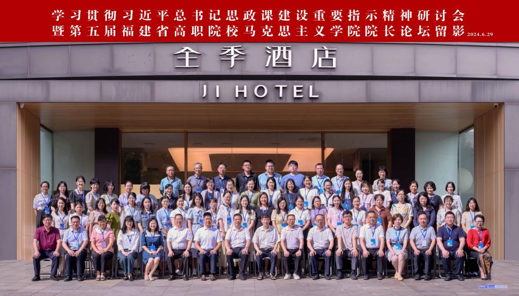 2024年6月29日,學(xué)習(xí)貫徹習(xí)近平總書記思政課建設(shè)重要指示精神研討會(huì)暨第五屆福建省高職高專院校馬克思主義學(xué)院院長(zhǎng)論壇在福州召開,我校馬克思主義學(xué)院院長(zhǎng)熊美蘭、思想道德與法治教研室主任顏冰鳳、形勢(shì)與政策教研室主任鄭冰與來(lái)自全省27所高職院校的馬院院長(zhǎng)、思政課骨干教師80余名代表共同參加了會(huì)議。