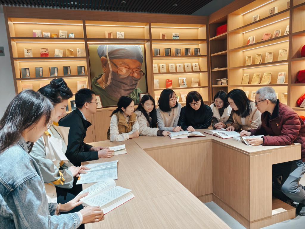 在吳孟超院士館,跟隨講解員腳步,全體黨員依次參觀吳孟超院士先進(jìn)事跡展“勵(lì)志報(bào)國”“勇攀高峰”“大醫(yī)仁心”“甘為人梯”“回報(bào)鄉(xiāng)梓”等5個(gè)版塊。參觀過程中,黨員們頻頻點(diǎn)頭,對(duì)吳老的高尚品格和崇高精神贊嘆不已,黨員們還分組收集相關(guān)資料,結(jié)合自己任教的課程,研討吳老感人事跡融入課程的著力點(diǎn)、方式和方法。