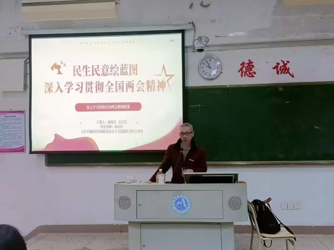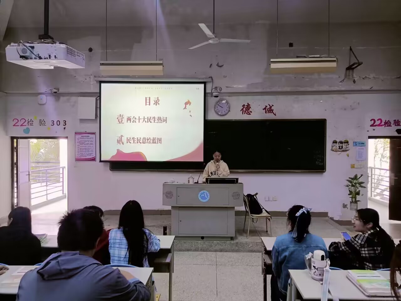 今年的全國(guó)兩會(huì)全面貫徹黨的二十大精神,在開(kāi)局之年把中國(guó)式現(xiàn)代化的宏偉藍(lán)圖轉(zhuǎn)化為具體奮斗目標(biāo),切實(shí)解決百姓關(guān)心的急難愁盼和熱點(diǎn)問(wèn)題,通過(guò)發(fā)展不斷提升民生福祉。為了更好地帶領(lǐng)同學(xué)們學(xué)習(xí)全國(guó)兩會(huì)精神,2023年4月11日,習(xí)近平新時(shí)代中國(guó)特色社會(huì)主義思想讀書(shū)宣講團(tuán)成員在胡濟(jì)林老師組織下,在醫(yī)學(xué)技術(shù)樓212階梯教室為19美容501班、19衛(wèi)管501班、19智能醫(yī)療裝備501班開(kāi)展線下宣講交流。