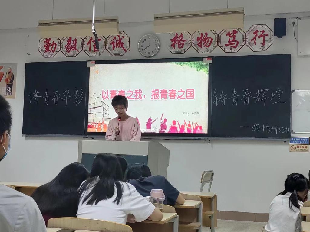 2023年5月11日-5月21日,演講與辯論社在來朋珍、徐舒寧老師指導及社團干事配合下成功舉辦主題為“譜青春華彰,鑄青春輝煌”的演講比賽。自初賽到決賽,參賽選手各執(zhí)一詞、各持己見闡述了青春肆意飛揚,熱愛經久不息。