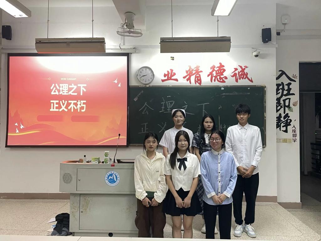 為提升閩衛(wèi)院學(xué)子法律意識與法治思維能力,在校園內(nèi)積極營造出尊法學(xué)法守法用法的良好氛圍,2024年6月6日,青年法學(xué)社在教學(xué)樓209開展“公理之下正義不朽”PPT演講比賽決賽。本次決賽由馬克思主義學(xué)院鄭冰老師、鄒亞彤老師以及三位社團負責(zé)人擔(dān)任評委。