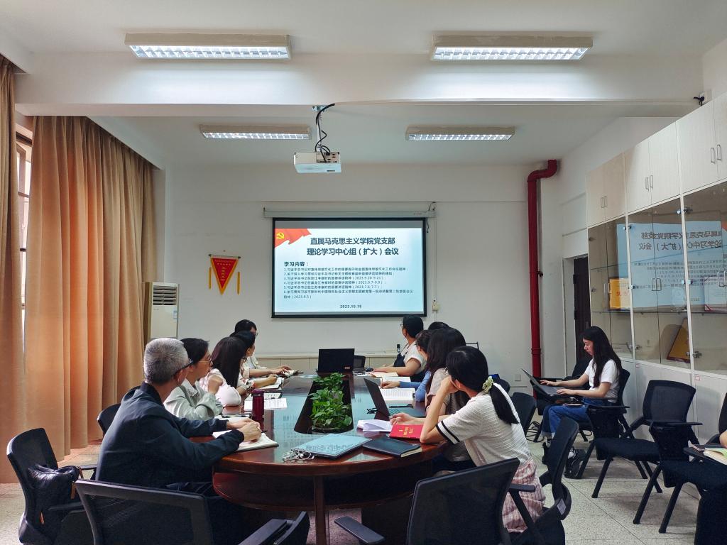 2023年10月19日,直屬馬克思主義學(xué)院黨支部在行政樓107開展理論學(xué)習(xí)中心組(擴(kuò)大)會(huì)議。會(huì)議由黨支部書記熊美蘭主持。