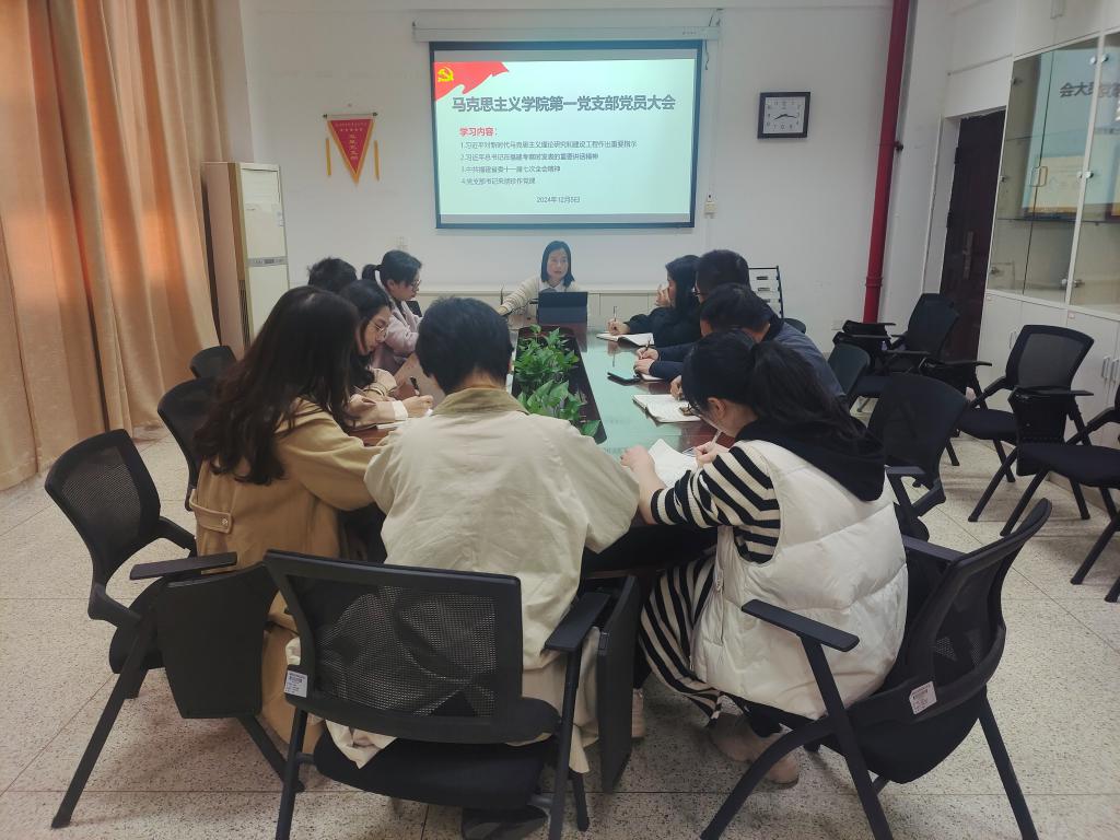 2024年12月5日,馬克思主義學院第一黨支部在厚德樓107會議室召開黨員大會,會議由黨支部書記來朋珍主持。