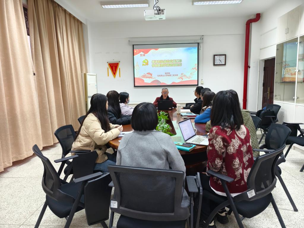 支部大力推動(dòng)黨建與教學(xué)融合發(fā)展,實(shí)施“雙輪驅(qū)動(dòng)”策略。黨課后,支部黨員結(jié)合自己的課程教學(xué),共同研討谷文昌精神“三進(jìn)”的具體做法。顏冰鳳、邱萍同志分別分享谷文昌精神融入“德法”課、“毛概”課教學(xué)實(shí)踐的探索與思考,為思政課教學(xué)改革創(chuàng)新提供了生動(dòng)素材與寶貴經(jīng)驗(yàn)。