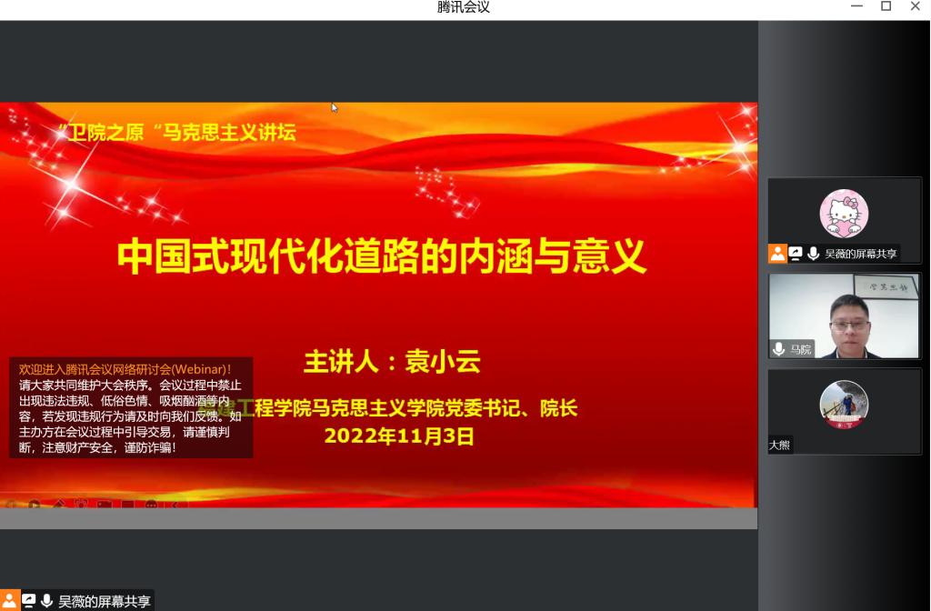 為引導(dǎo)我校師生堅持以中國式現(xiàn)代化全面推進(jìn)中華民族偉大復(fù)興,不懈奮斗,勇毅前行,向著第二個百年奮斗目標(biāo)邁進(jìn),2022年11月3日,我校馬克思主義學(xué)院邀請福建工程學(xué)院袁小云教授作《中國式現(xiàn)代化道路的內(nèi)涵與意義》專題講座。講座由馬克思主義學(xué)院院長熊美蘭主持,馬克思主義學(xué)院全體教師及部分學(xué)生代表參加。