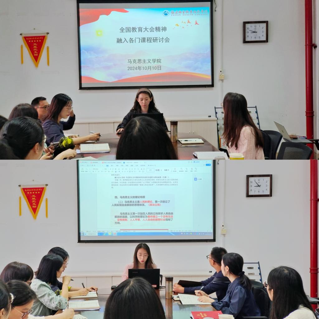 接著,顏冰鳳老師分享了黨的二十屆三中全會(huì)精神融入“思想道德與法治”具體案例,提出要以問(wèn)題為導(dǎo)向,結(jié)合黨的二十屆三中全會(huì)、全國(guó)教育大會(huì)精神和教學(xué)重難點(diǎn)設(shè)置問(wèn)題鏈,精心組合情景式教學(xué)、自主探究、案例分析等多種教學(xué)方式和手段幫助學(xué)生突破教學(xué)重難點(diǎn),提升學(xué)生學(xué)習(xí)實(shí)效。張茵珠老師根據(jù)“形勢(shì)與政策”開學(xué)第一課及校領(lǐng)導(dǎo)關(guān)于學(xué)習(xí)貫徹黨的二十屆三中全會(huì)精神專題內(nèi)容所提建議,結(jié)合近期培訓(xùn)學(xué)習(xí)收獲談到要準(zhǔn)確理解黨和國(guó)家理論政策,通過(guò)科學(xué)嚴(yán)謹(jǐn)?shù)姆椒ㄔ诮虒W(xué)過(guò)程中證明并展示政策的正面效應(yīng)。龍慧老師聚焦“高職醫(yī)學(xué)生職業(yè)發(fā)展與就業(yè)創(chuàng)業(yè)”課程進(jìn)行分享交流,黨的二十屆三中全會(huì)和全國(guó)教育大會(huì)為職業(yè)發(fā)展與就業(yè)創(chuàng)業(yè)指明了方向,將會(huì)議精神融入課程,有利于讓學(xué)生明白當(dāng)前國(guó)家就業(yè)形勢(shì)和政策,引導(dǎo)學(xué)生根據(jù)國(guó)家需要和社會(huì)需求規(guī)劃自己的職業(yè),選擇合適的就業(yè)方向。