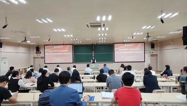 會上,復(fù)旦大學(xué)馬克思主義學(xué)院院長李冉教授分別從四個難點、四個關(guān)鍵對黨的二十屆三中全會精神融入高校思政課的思路做教學(xué)指導(dǎo)。隨后,張小瑛、陳婧兩位思政課教師圍繞黨的二十屆三中全會精神有關(guān)內(nèi)容,結(jié)合“習(xí)近平新時代中國特色社會主義思想概論”課、“形勢與政策”課進行了教學(xué)展示。