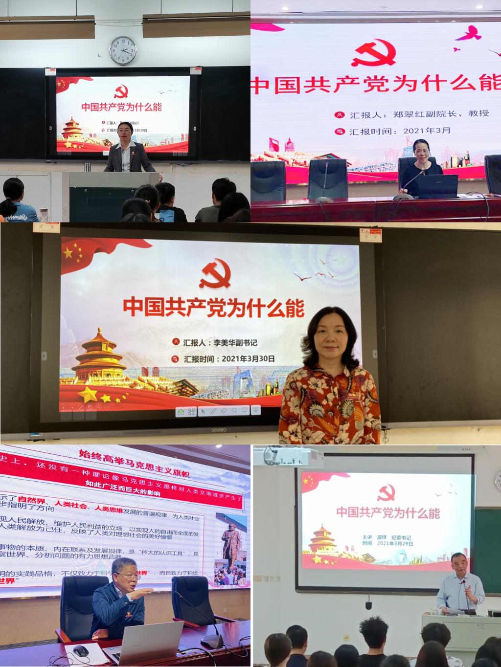 即將迎來中國共產(chǎn)黨100周年生日之際,我校黨委書記曾武祈、院長許能鋒、黨委副書記李美華、紀委書記游鋒、副院長陳貞健、黃銘珊、鄭翠紅等校領(lǐng)導(dǎo)深入探究“中國共產(chǎn)黨為什么能”的奧秘,為我校師生上了一堂生動而熱情、又十分接地氣的思政課,師生們認為:“有深度的思考,有落地的實踐,這樣的思政課坐得住、聽得進、效果好。”。