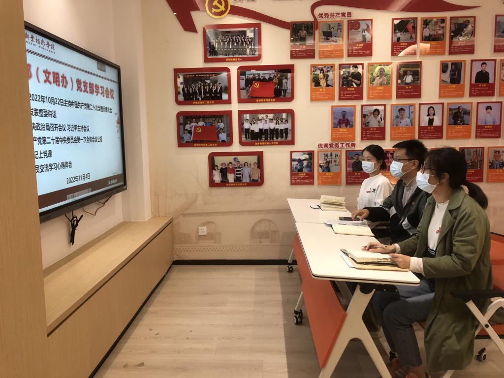 2022年11月4日,宣傳部(文明辦)黨支部召開學(xué)習(xí)會議。支部書記宋維為支部黨員講授了《推進文化自信自強,鑄就社會主義文化新輝煌》專題黨課,并帶領(lǐng)黨員學(xué)習(xí)了習(xí)近平主持中國共產(chǎn)黨第二十次全國代表大會閉幕會發(fā)表的重要講話、習(xí)近平在中共中央政治局會議上的重要講話精神、中國共產(chǎn)黨第二十屆中央委員會第一次全體會議公報。