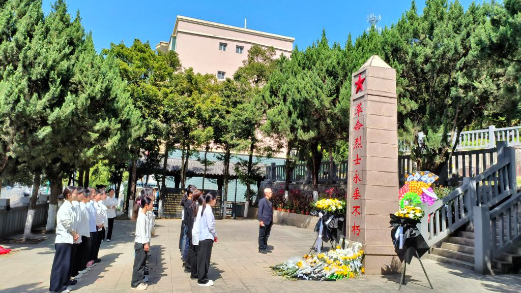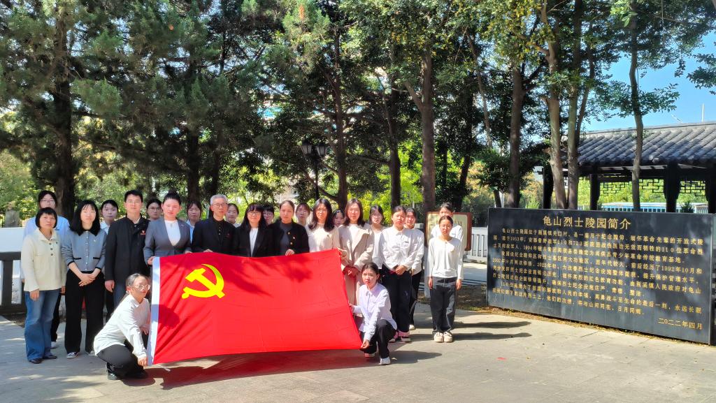 簽約儀式結(jié)束后,雙方攜手前往龜山烈士陵園開展“緬懷革命先烈 傳承紅色基因”主題黨日活動(dòng)。全體黨員懷著崇敬的心情,列隊(duì)站在莊嚴(yán)肅穆的革命烈士紀(jì)念碑前;奏唱中華人民共和國(guó)國(guó)歌,向革命先烈默哀致敬;黨員代表與學(xué)生代表共同向烈士紀(jì)念碑獻(xiàn)花;黨員教師代表講述烈士事跡,結(jié)合黨的二十大精神談初心使命;學(xué)生代表發(fā)表感言,深切表達(dá)傳承革命精神的決心;隨后參觀陵園,擦拭烈士墓碑,清掃陵園。通過此次活動(dòng),進(jìn)一步弘揚(yáng)愛國(guó)主義精神,增強(qiáng)黨員和學(xué)生的歷史責(zé)任感和使命感。