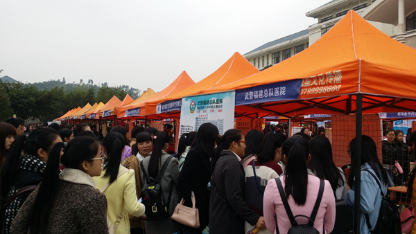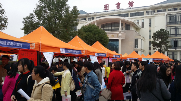 1月9日上午,福建衛(wèi)生職業(yè)技術(shù)學(xué)院2016屆畢業(yè)生供需見(jiàn)面會(huì)在校園圖書(shū)館前廣場(chǎng)舉行,吸引了全省各地147家醫(yī)藥衛(wèi)生單位參加,提供就業(yè)崗位3000多個(gè)。招聘會(huì)現(xiàn)場(chǎng)氣氛濃烈,人頭攢動(dòng),多家衛(wèi)生醫(yī)療單位、醫(yī)藥企業(yè)擠滿(mǎn)了咨詢(xún)的畢業(yè)生,用人單位也根據(jù)需求,閱覽畢業(yè)生簡(jiǎn)歷,與畢業(yè)生親切交流、吸引人才。學(xué)院黨委書(shū)記林春明、副院長(zhǎng)魏立娜親臨招聘會(huì)現(xiàn)場(chǎng),與企業(yè)相關(guān)負(fù)責(zé)人親切交流,了解用人單位需求,各系部黨總支書(shū)記和畢業(yè)生輔導(dǎo)員到現(xiàn)場(chǎng)與用人單位接洽溝通,為畢業(yè)生應(yīng)聘提供指導(dǎo)和服務(wù)。福建教育電視臺(tái)和海峽都市報(bào)記者對(duì)本次招聘會(huì)情況進(jìn)行了報(bào)道。