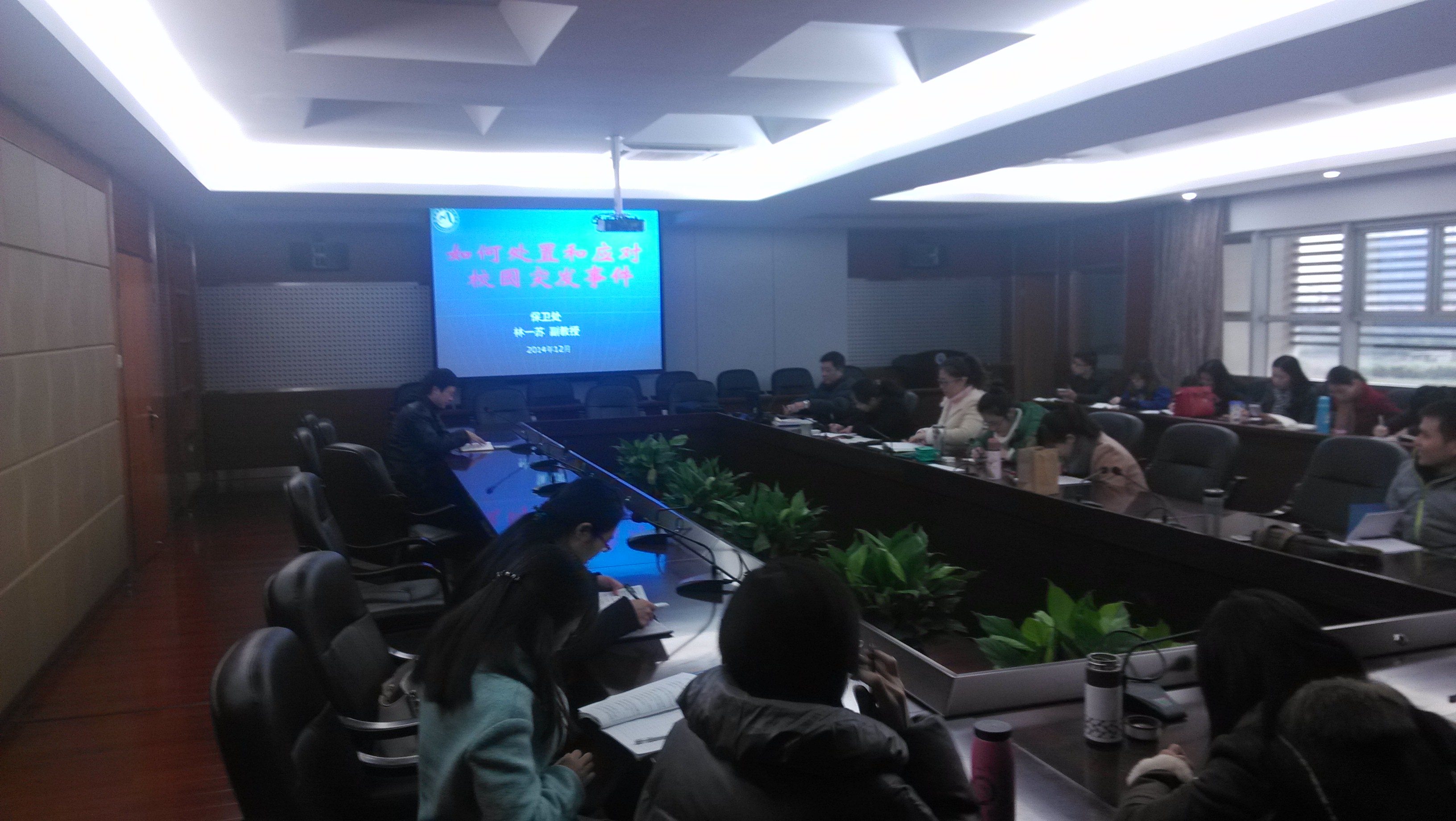 為加強輔導員隊伍建設,學工處將職業(yè)能力培訓列入日常輔導員例會內容。2014年12月23日上午,學工處邀請保衛(wèi)處處長林一蘇為全體專兼職輔導員作了《如何處置和應對校園突發(fā)事件》專題講座。