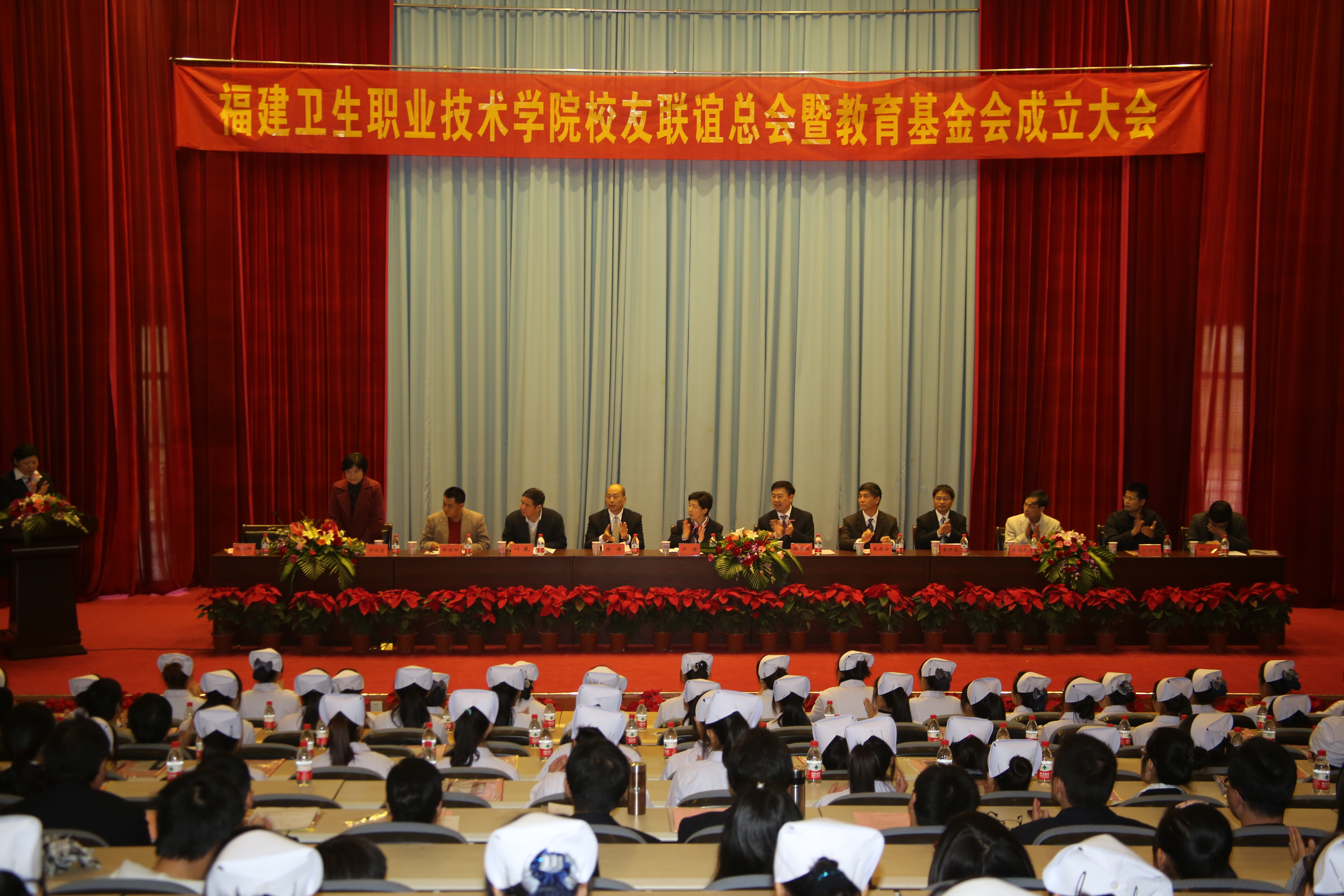 12月8日下午,福建衛(wèi)生職業(yè)技術(shù)學(xué)院校友聯(lián)誼總會(huì)暨教育基金會(huì)成立大會(huì)在學(xué)術(shù)廳隆重召開。院領(lǐng)導(dǎo)林春明、陳雄、黃開良、魏立娜參加會(huì)議,各地市校友會(huì)會(huì)長(zhǎng)和50多位校友、嘉賓應(yīng)邀出席,各系部負(fù)責(zé)同志和師生代表400多人參加了會(huì)議。魏立娜副院長(zhǎng)主持會(huì)議。