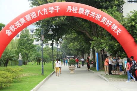 金秋校園,陽光明媚,彩旗飄揚(yáng),鮮花綻放,一條條歡迎新同學(xué)的醒目標(biāo)語,一張張歡迎新同學(xué)的親切笑臉,一件件迎接新同學(xué)的細(xì)致安排,充滿了熱情和諧的迎新氛圍。