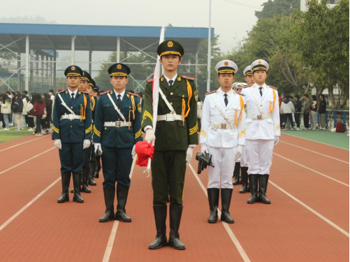 旗手振臂一揮,鮮艷的五星紅旗在威武雄壯的《義勇軍進行曲》中徐徐展開,全體在場師生目視五星紅旗冉冉升起,在熠熠晨光中迎風飄揚,愛國之情在師生們心中滌蕩。升旗儀式,學子們致敬五星紅旗,與國旗一同升起的還有對新學期、新時代的無限向往。