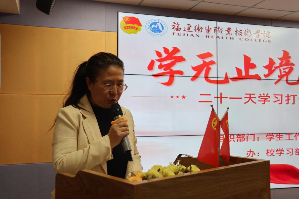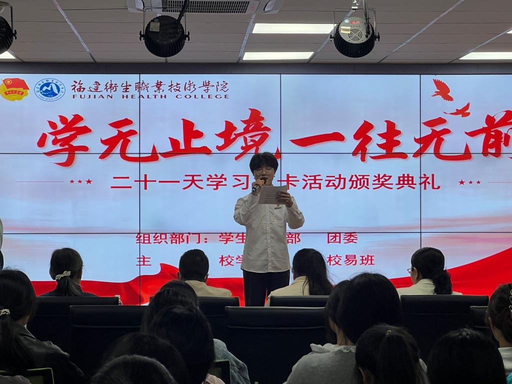 春天的閩衛(wèi)院,清朗的學(xué)風(fēng)拂面而來,學(xué)校持續(xù)開展三期的“21天學(xué)習(xí)打卡活動”完美收官。4月1日,學(xué)校在“一站式”學(xué)生社區(qū)的青年之家多媒體活動室舉辦學(xué)習(xí)打卡活動頒獎儀式,副校長黃銘珊出席儀式,學(xué)生工作部、各學(xué)院、校學(xué)習(xí)部、校易班、獲獎學(xué)生代表等100余名師生參加儀式。